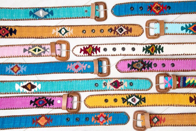 Fargerike og stilige guatemalanske polobelt laget av lær og bomull. Unisex. Disse beltene har lærsying og metalløyer for å unngå flising og for å garantere kvaliteten deres. Fargene i rombe- eller diamanform på hvert belte kan variere fra belte til belte, ettersom de er håndlagde. Lengder XS (liv 66 cm & 71 cm), S (liv 76 cm & 81 cm), M (liv 86 cm & 91 cm), L (liv 97 cm & 102 cm), XL (liv 107 cm & 112 cm). Bredde 4 centimeter. Vennligst sørg for at du bestiller riktig størrelse for å unngå retur og fraktkostnader. Den beste måten er å måle et av de eksisterende beltene dine fra bunnen av spennen (ikke tuppen) til hullet/øyet der du bruker det. Denne målingen vil være størrelsen på livet som skal bestilles.