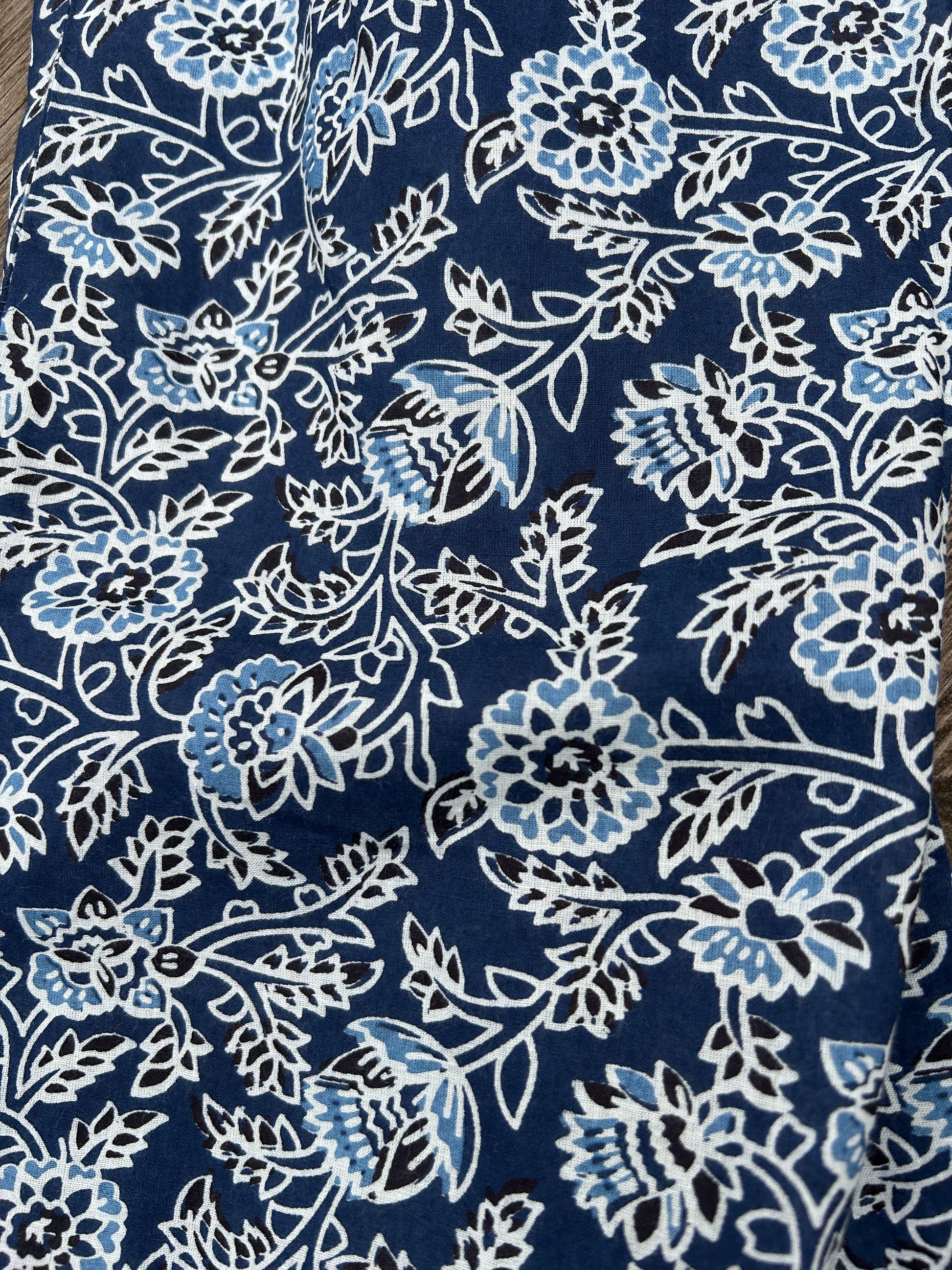 Overdelen har påsydd brystlomme, og fine detaljer som kantebånd og blomsterknapper.