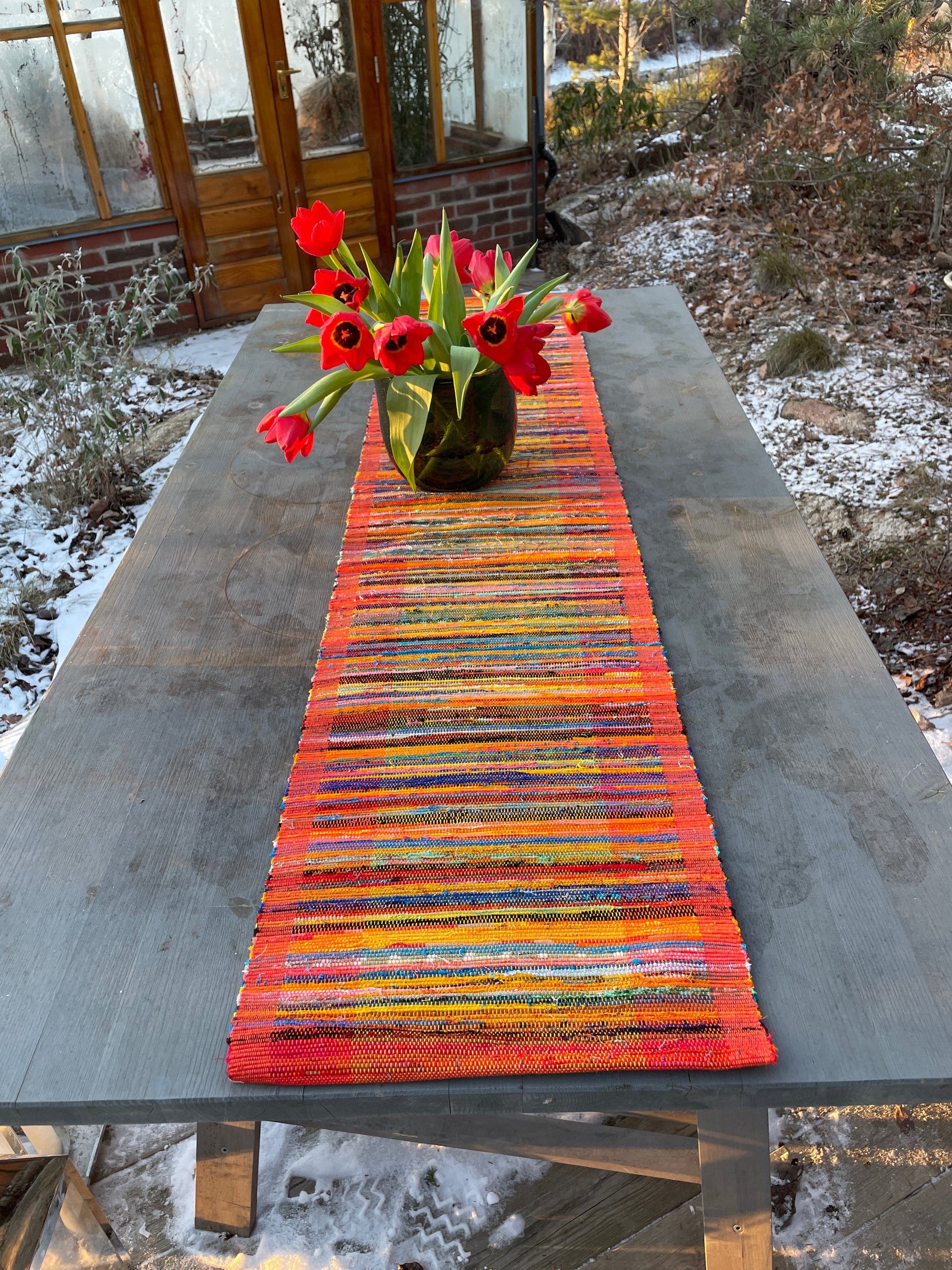 Disse fine bordløperene er håndvevet og vil derfor variere noe i uttrykk, men vil i hovedsak fremstå som på bildet over.