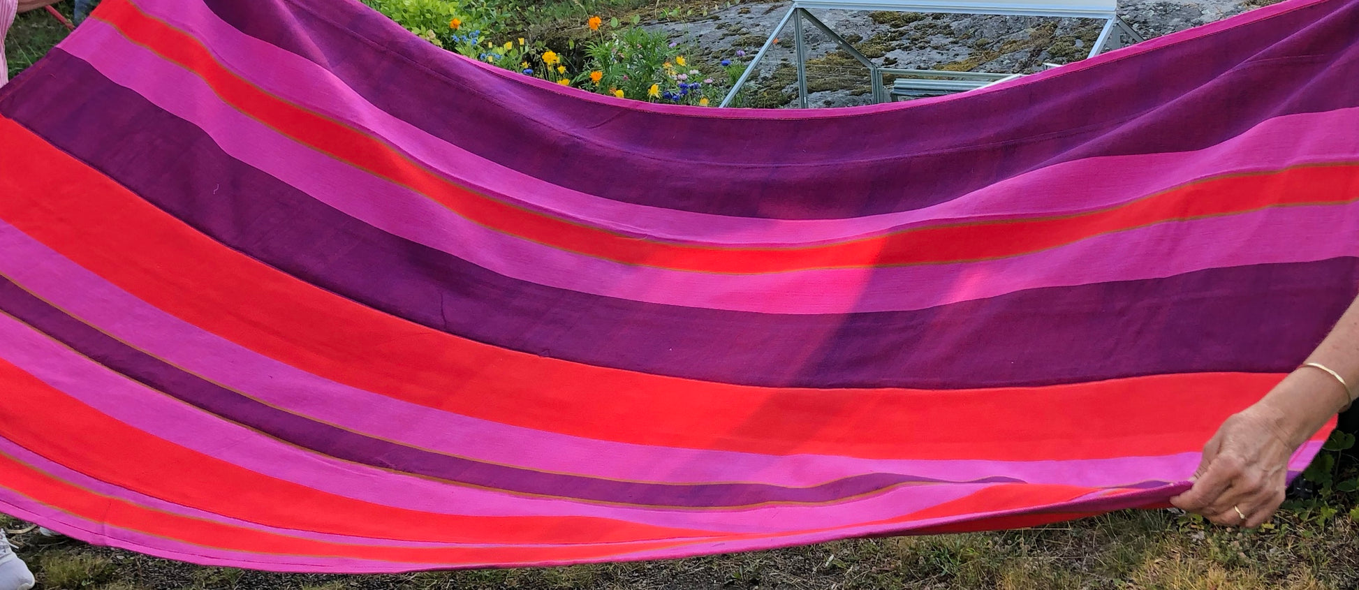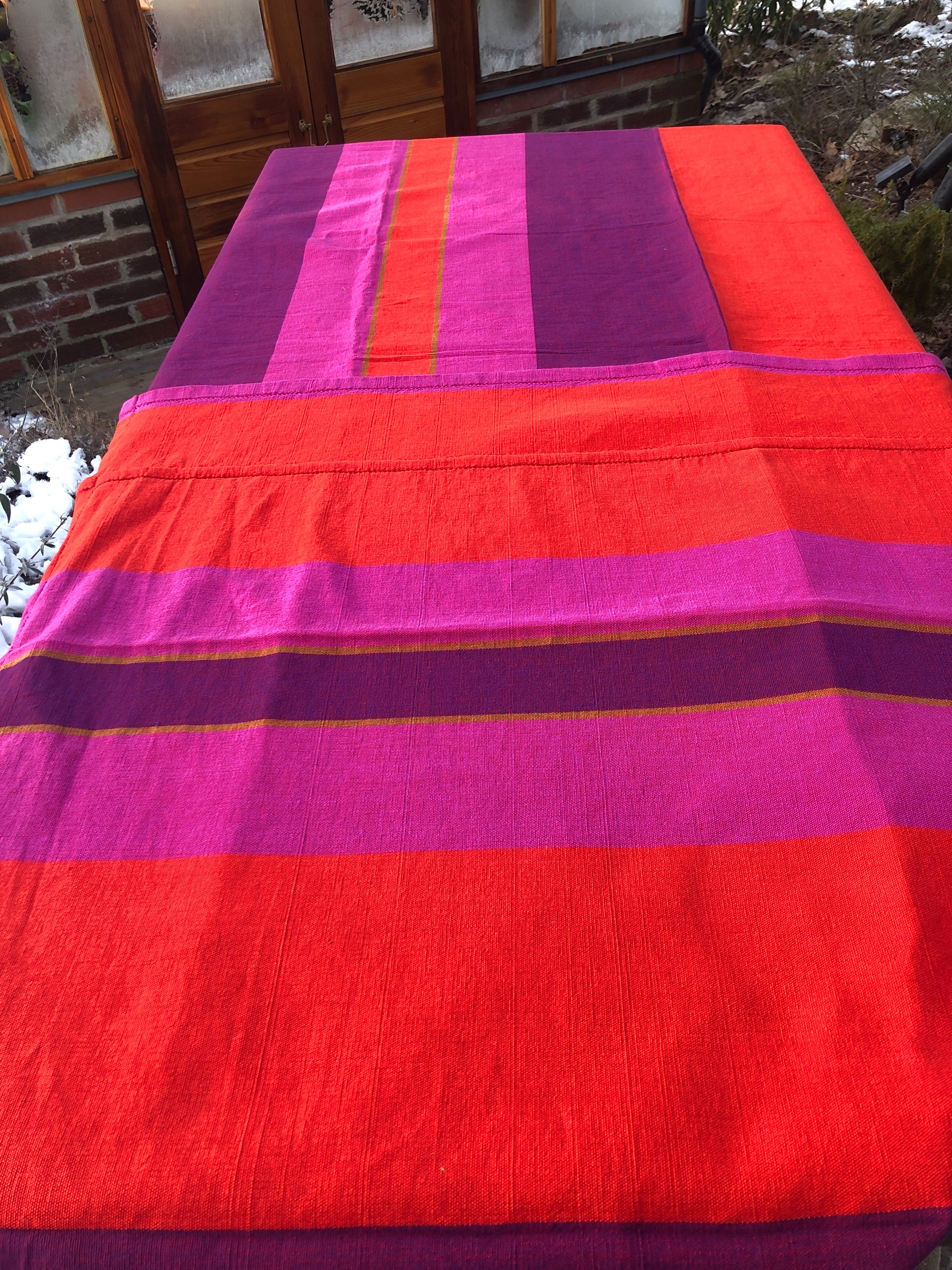 Mål 277x153 cm. 100% lokalt dyrket bomull som er farget for hånd. fargene som brukes tilfredsstiller de strengeste miljøkrav.