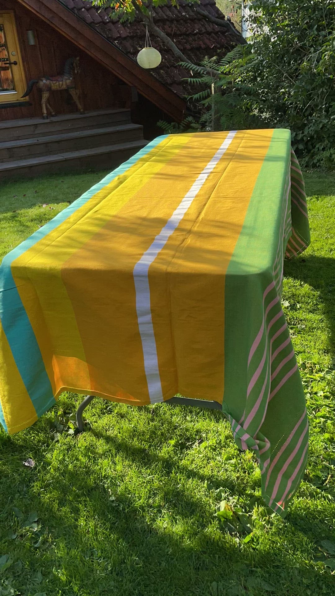 Denne duken er produsert hos Barefoot på Sri Lanka. Det garanterer høyeste kvalitet både i design og utførelse. Dessuten betyr det at veverskene er anstendig betalt for den flotte jobben de gjør.