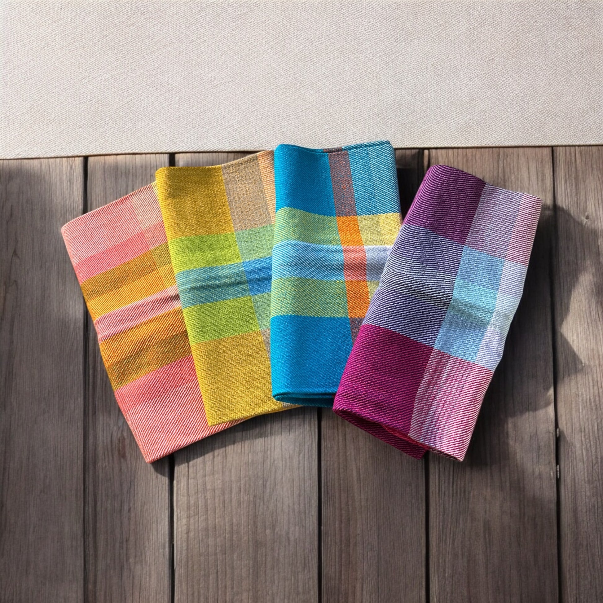 Håndvevde kjøkkenhåndklær i ulike fargekombinasjoner
