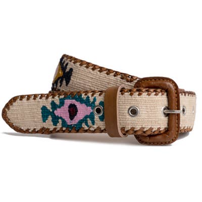 Beltene er slitesterke, de erforsterket med lær langs kantene,og beltehullene er forsterket med metall for å unngå slitasje.Beltene er håndlaget og fargekombinasjonene varierer fra belte til belte.