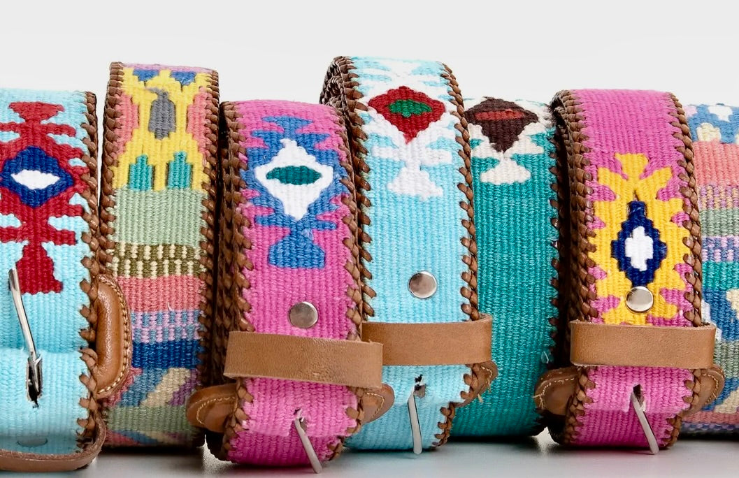 Beltene er slitesterke, de erforsterket med lær langs kantene,og beltehullene er forsterket med metall for å unngå slitasje.Beltene er håndlaget og fargekombinasjonene varierer fra belte til belte.
