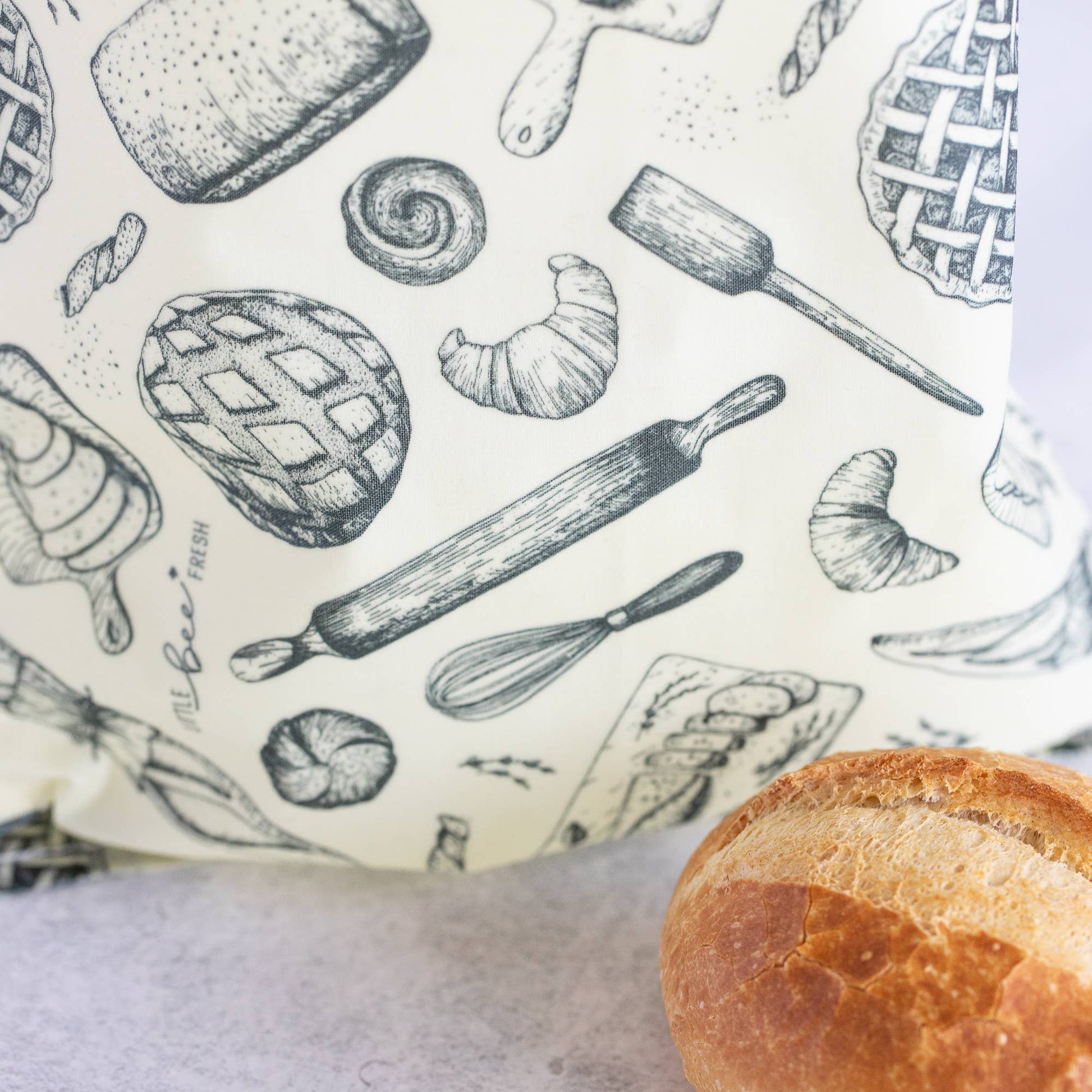 Bivoks stoffpose i „brød“ design er den ideelle følgesvenn på reiser, eller til oppbevaring av mat hjemme. Perfekt til alle som liker å være i naturen, ligge på stranden, vandre eller ta en tur gennem parken og ønsker at transportere mat plastfritt.