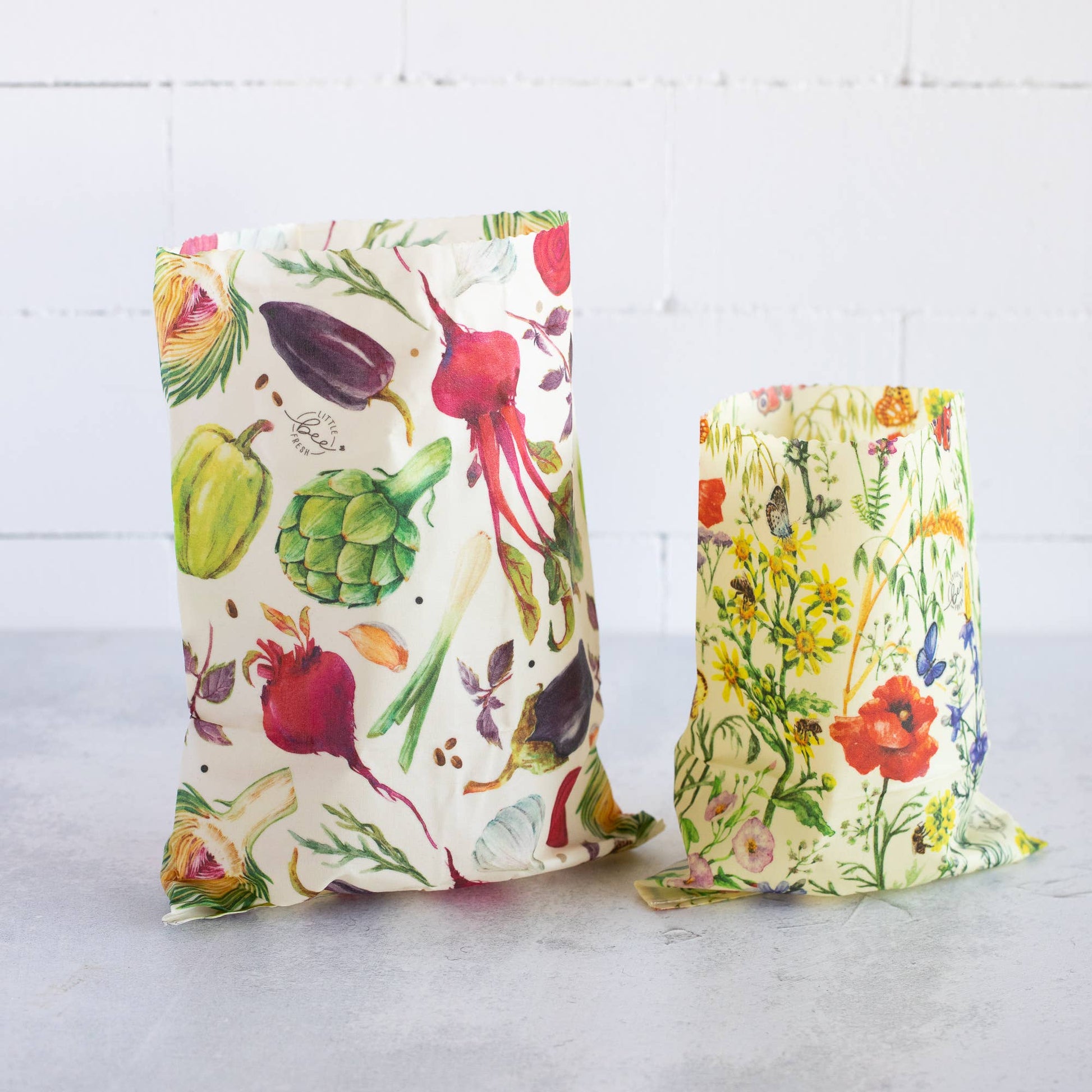 Stor pose i bivoks til oppbevaring av mat,25x32 cm. Motiv "grønnsaker".