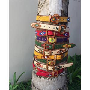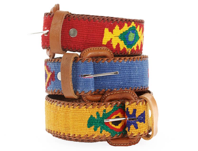 Farverige og stilfulde guatemalanske polobælter lavet i læder og bomuld. Unisex. Disse bælter har lædersyninger og metaløjer for at undgå flossning og for at garantere deres kvalitet.