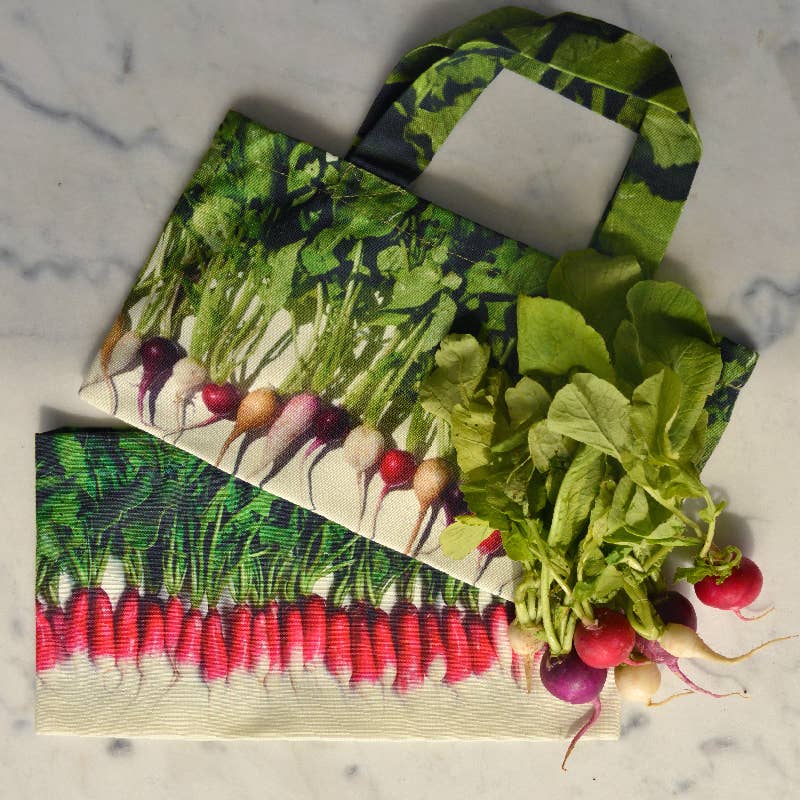 Virkelig sjov, denne farverige indkøbstaske med radiseprint vil aldrig svigte dig til dine små indkøb. Med sit livlige print vil den bringe farve og glæde til dit køkken. Tasken er fremstillet i Frankrig, trykt i det nordlige Frankrig og lavet i Paris. Den er et økologisk valg, da den er lavet af genanvendt polyester (plastflasker) vævet i Rhône-Alpes-regionen. Som en original indkøbstaske er den designet af Maron Bouillie. Fra køkkenhaven til værkstedet har hun både passet den og båret den! Disse poser med grøntsagsprint, som er brandets flagskibsprodukter, fås i format og design inspireret af dine yndlingsgrøntsager.