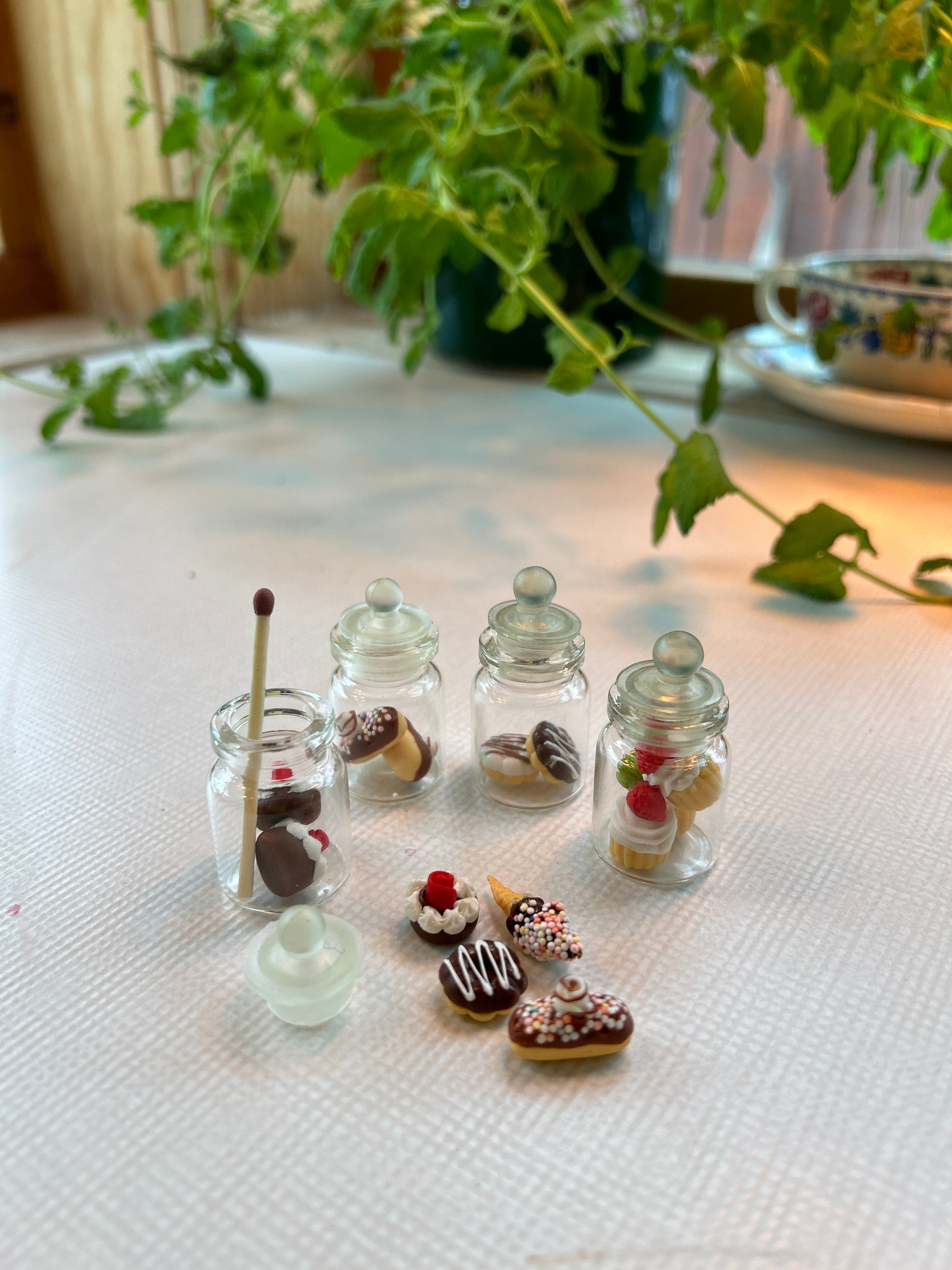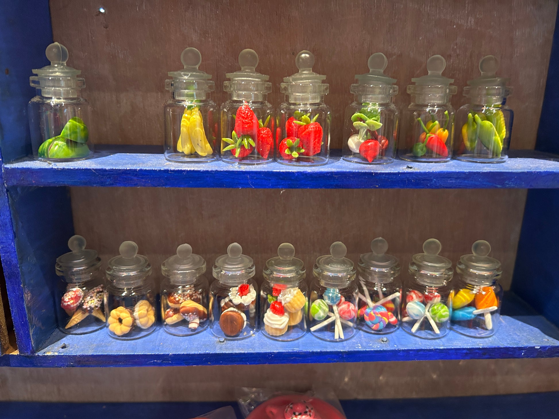 Krukkene er fylt med de lekreste små kaker, jordbær, slikkepinner og andre fargerike fristelser.