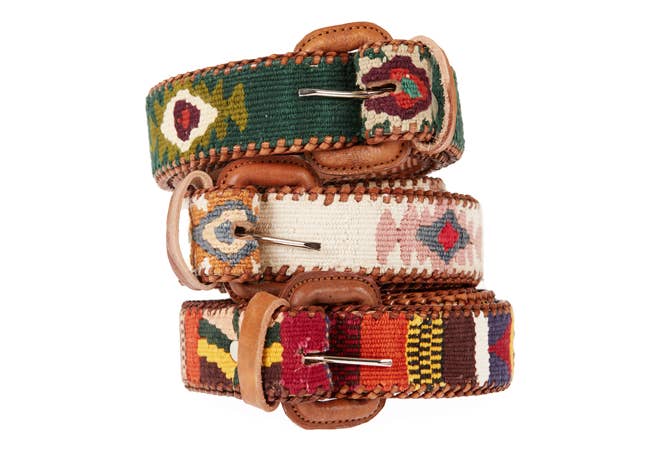 De rombe- eller diamantformede farver på hvert bælte kan variere fra bælte til bælte, da de er håndlavede.